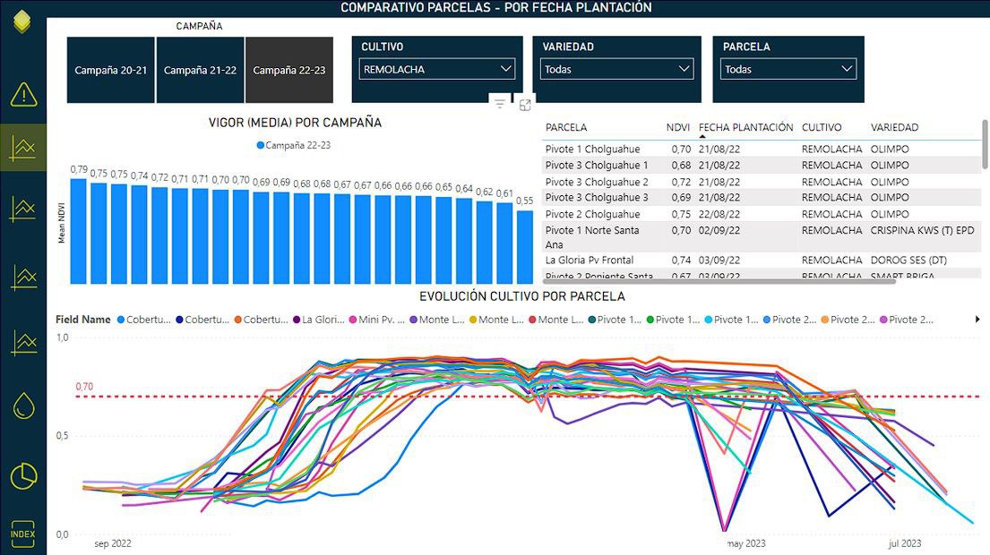Seguimiento semanal proactivo de cultivos incluso en días nublados. Nuestro foco es el aumento de eficiencia de acciones a tomar